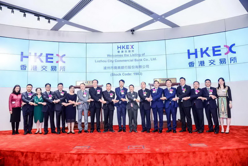 9时30分,泸州市委常委、副市长龚玉泉与我行党委书记、董事长游江共同在香港联交所鸣锣开市,标志着泸州市商业银行在香港联交所正式挂牌交易。泸州市财政局、国资委、金融办等相关部门主要负责人,我行主要股东及董事、监事和高管代表,各中介机构代表,基石投资者及合作伙伴等80位领导嘉宾共同见证了这一历史时刻。